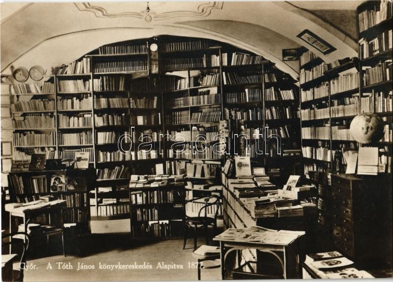 Beschreibung: Győr, A Tóth János könyvkereskedés (Alapítva 1877), belső, saját kiadása
