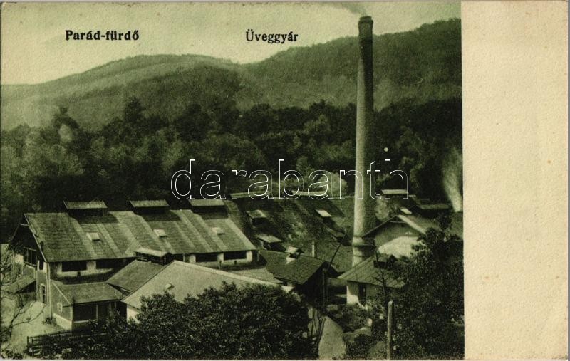 Parád-fürdő, üveggyár. Pauncz Illés kiadása https://www.darabanth.com/de/33-Gross-Auktion/33.1/Ansichtskarten/Ungarn~13900/Parad-furdo-uveggyar-Pauncz-Illes-kiadasa~II1962156