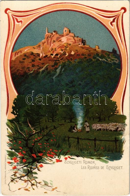 Beschreibung: Szigliget, Várrom, kiadja Bruchsteiner és fia, Digestol Glück reklám a hátoldalon. Art Nouveau litho