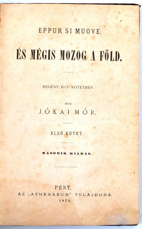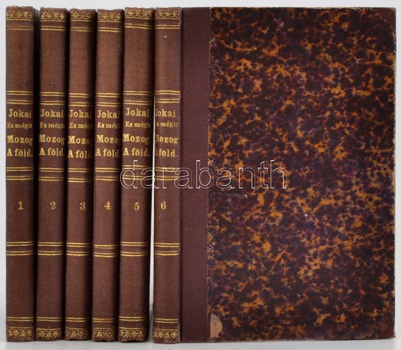 Jókai Mór: És mégis mozog a föld. I-VI. köt. Pest, 1873., Athenaeum, VII+197+3;198+2;183+1;191+1;228+2;188+2 p. Második kiadás. Átkötött aranyozott félvászon-kötés, kissé kopott borítóval. Ritka!