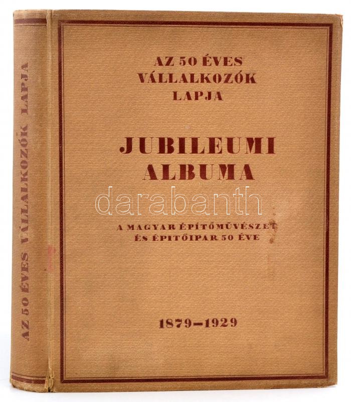 Jubileumi Album. 1879-1929. Az 50 éves Vállalkozók Lapja Jubileumi Albuma. A Magyar építőművészet és építőipar 50 éve. Szerk.: Lakatos Mihály, Mészáros l. Edgár, és Óriás Zoltán. Kiadja: Vállalkozók Lapja. Bp.,(1929),Bíró Miklós Nyomdai Műintézet Rt., 6 sztl. lev.+614 p. Rendkívül gazdag fekete-fehér szövegközti képanyaggal illusztrált. Kiadói egészvászon-kötésben, a gerincen kis sérüléssel, kissé kopott borítóval. Számos neves szerzőt felvonultató kötet (pl.: Bierbauer Virgil, Komor Marcell, Lechner Jenő, Zelovich Kornél, Mattyasovszky Zsolnay Lajos...stb.) a korabeli budapesti és vidéki tervező építészeket, építőipari és rokonvállalatok munkáit mutatja be, rendkívül gazdag képanyag illusztrálva a kötetet.