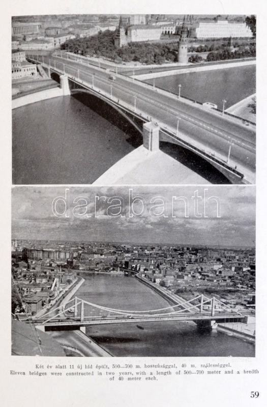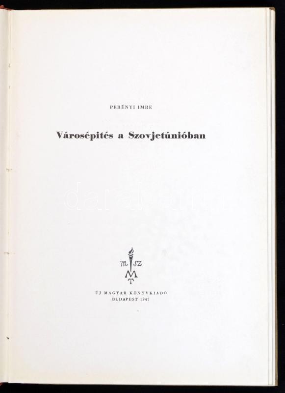 Perényi Imre: Városépítés a Szovjetúnióban. Bp., 1947., Új Magyar Könyvkiadó. Magyar nyelven. Angol nyelvű bevezetővel és képaláírásokkal. Gazdag fekete-fehér képanyaggal. Kiadói félvászon-kötés, kissé kopott borítóval, laza fűzéssel.