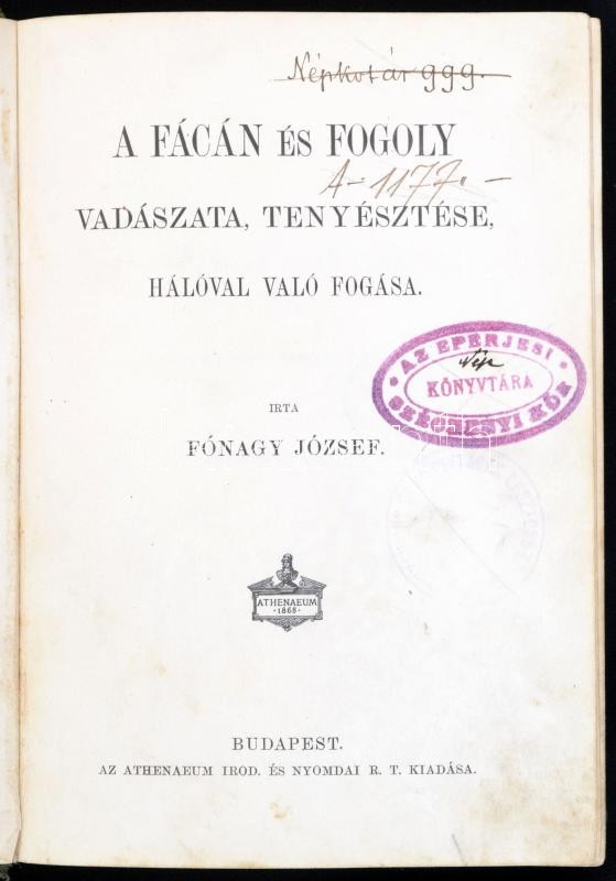 Fónagy József: A fácán és fogoly vadászata, tenyésztése, hálóval való fogása