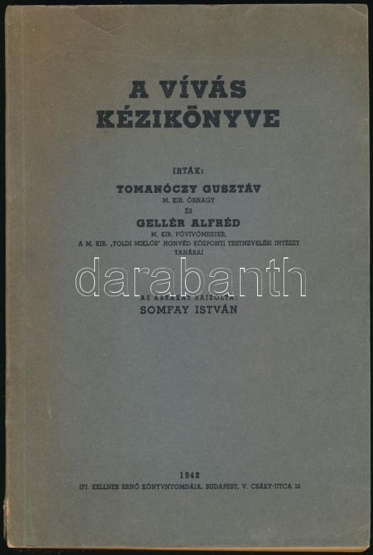 Tomanóczy Gusztáv-Gellér Alfréd: A vívás kézikönyve. Somfay István ábráival. Bp., 1942., Ifj. Kellner Ernő, 230 p. Első kiadás. Kiadói papírkötésben, kissé szakadt borítóval.