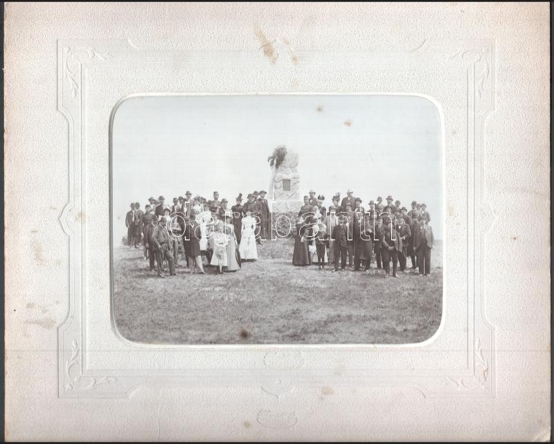 1897 Felsőpakony, orvvadász által megölt Ifj. Kégl György huszár hadnagy emlékműve. Nagy méretű fotó, kartonon. Schmindt Ágoston fényképész Kőbánya, paszpartuban, 37x31 cm