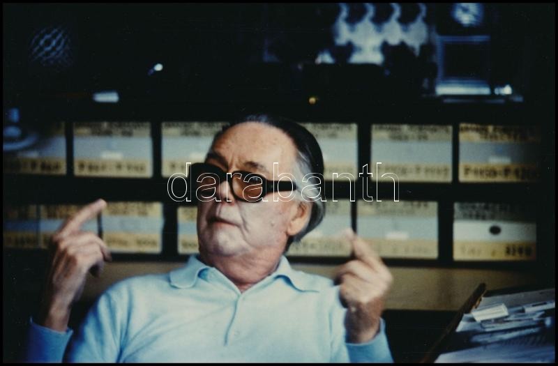 Hervé, Rodolf (1957-2000): Victor Vasarely portréja a műtermében. Hátoldalán pecséttel jelzett fotó, 15,5 x 24 cm / Hervé, Rodolf (1957-2000): Victor Vasarely in his studio. Photo with the stamp of Hervé.