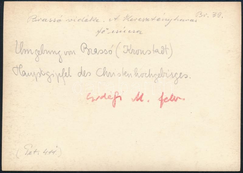 cca 1910 Brassó környéke, a Keresztényhavas, Erdélyi Mór felvétele, hátulján feliratozva, 11,5×16 cm / Region of Kronstadt (Brasov), Postăvaru, photograph taken by Mór Erdélyi, with notes on its back, 11,5×16 cm