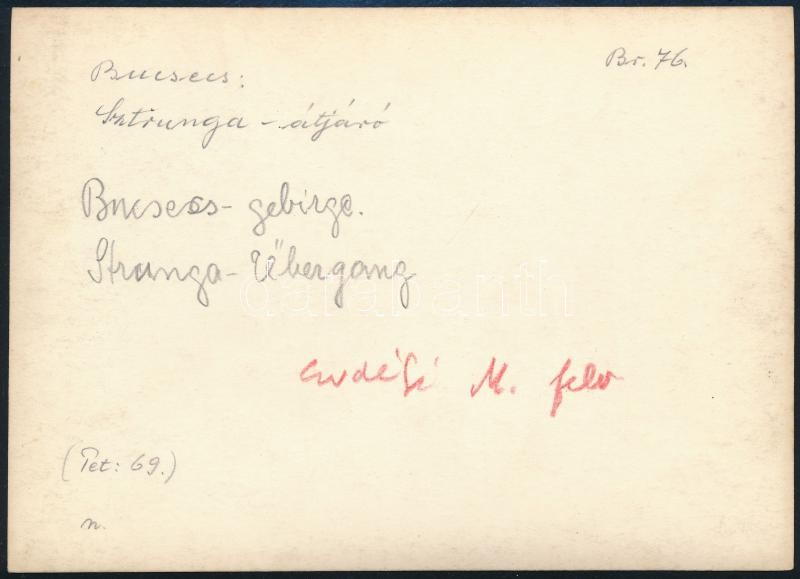 cca 1910 Bucsecs-hegység, Strunga-átjáró, Erdélyi Mór felvétele, hátulján feliratozva, 11,5×16 cm / Muntii Bucegi, photograph taken by Mór Erdélyi, with notes on its back, 11,5×16 cm