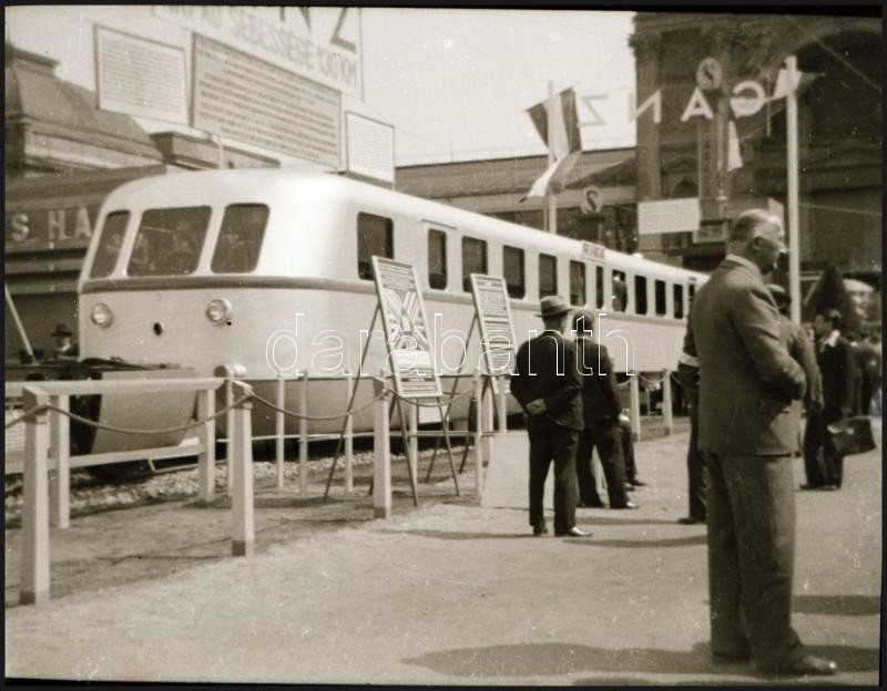 Beschreibung: cca 1938 A Budapesti Nemzetközi Vásáron kiállított Árpád vonatról készített felvétel, 1 db vintage negatív, 4,5x6 cm
