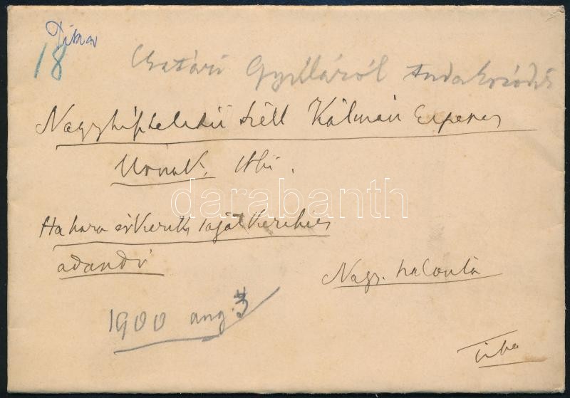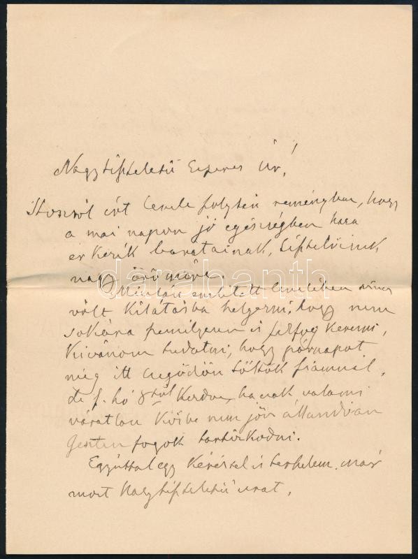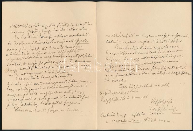 1900 Tisza Kálmán miniszterelnök saját kézzel írt levele Szél Kálmán nagyszalontai esperesnek melyben egy szegény család számára kéri közbenjárását 3 beírt oldal, borítékkal / Hand written letter by hungarian prime minister Kálmán Tisza to Kálmán Szél, dean in Salonta, about help for a poor family. 3 pages with envelope.