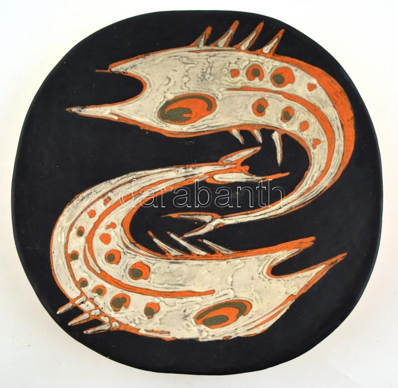 Beschreibung: Gorka Lívia (1925-2011): Halas fali tál, festett mázas kerámia, jelzett, hibátlan, d:29 cm
