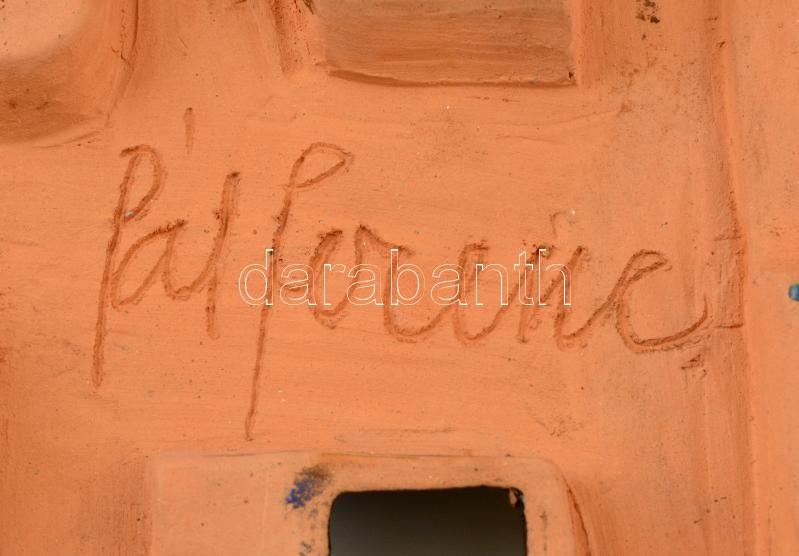Beschreibung: Pál Ferenc (1914-2008): Lovacskák, kerámia faldísz, kézzel festett, jelzett, kopásnyomokkal, 18,5×24,5 cm