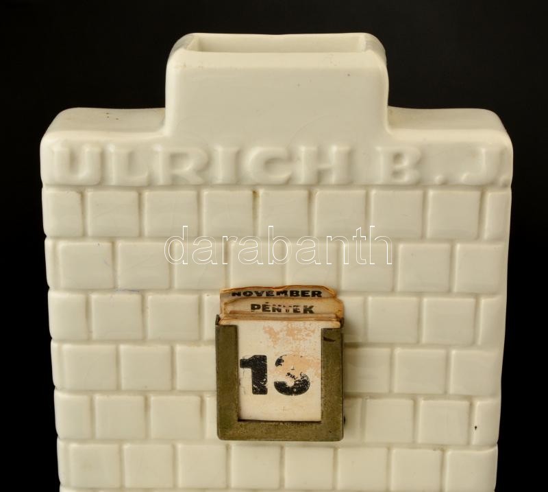 Zsolnay porcelán Ulrich B. J. reklámos (cca 1900) asztali naptár és ír... https://www.darabanth.com/de/33-Gross-Auktion/33.1/Kunst-Dokumente-andere-Sammelgebiete/Porzellan~13860/Zsolnay-porcelan-Ulrich-B-J-reklamos-cca-1900-asztali-naptar-es-iroszer-tarto-ket-reszb~II2079971