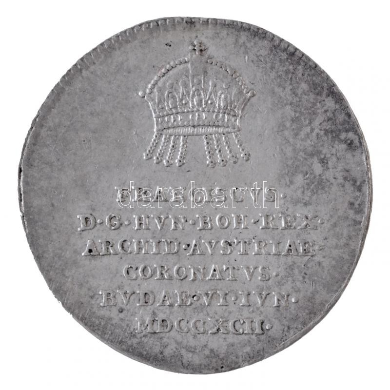 Habsburg Birodalom 1792. "I. (II.) Ferenc budai koronázására" jelzetlen Ag koronázási zseton. "FRANCISCVS - D G HVN BOH REX - ARCHID AVSTRIAE - CORONATVS - BVDAE VI IVN - MDCCXCII / LEGE ET FIDE" Johann Nepomuk Würth (1750-1811) műve, mesterjegy nélkül (2,16g/20,5mm) T:2 / Habsburg Monarchy 1792. "Coronation of Franz I (II) in Buda" Ag coronation token. Maker: Johann Nepomuk Würth (1750-1811)(2,16g/20,5mm) C:XF Montenuovo 2262., HTÉ 891.