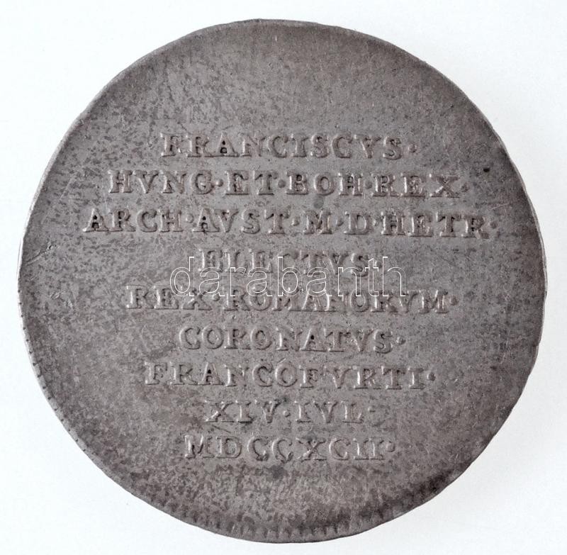 Habsburg Birodalom 1792. "II. (I.) Ferenc frankfurti koronázása" jelzetlen Ag zseton. "FRANCISCVS - HVNG ET BOH REX - ARCH AVST M D HETR - ELECTVS - REX ROMANORVM - CORONATVS - FRANCOFVRTI - XIV IVL - MDCCXCII / LEGE ET FIDE". Alkotó: Johann Nepomuk Würth (2,20g/20,5mm) T:2 / Habsburg Monarchy 1792. "Coronation of Franz II (I) in Frankfurt" Ag token. Maker: Johann Nepomuk Würth (2,20g/20,5mm) C:XF