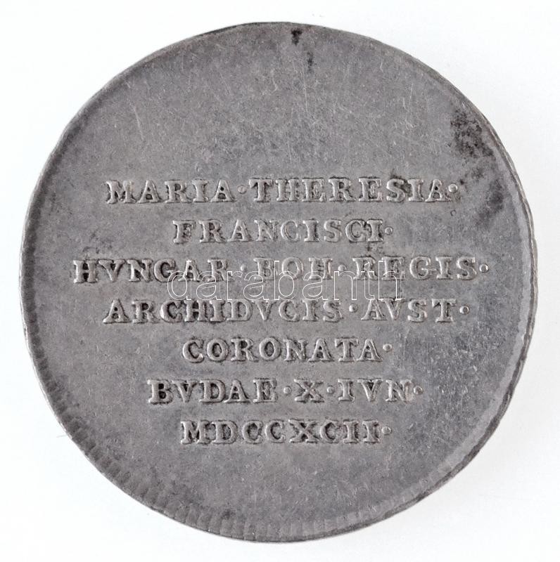 Habsburg Birodalom 1792. "Mária Terézia budai koronázása" jelzetlen Ag zseton. "MARIA THERESIA - FRANCISCI - HVNGAR BOH REGIS - ARCHIDVCIS AVST - CORONATA - BUDAE X IVN - MDCCXCII / IMITARI MALIM OVAM VOCARI" Alkotó: Johann Nepomuk Würth (2,20g/20,5mm) T:2 kis karc / Habsburg Monarchy 1792. "Coronation of Maria Theresia in Buda" Ag token. Maker: Johann Nepomuk Würth (2,20g/20,5mm) C:XF slightly scratched