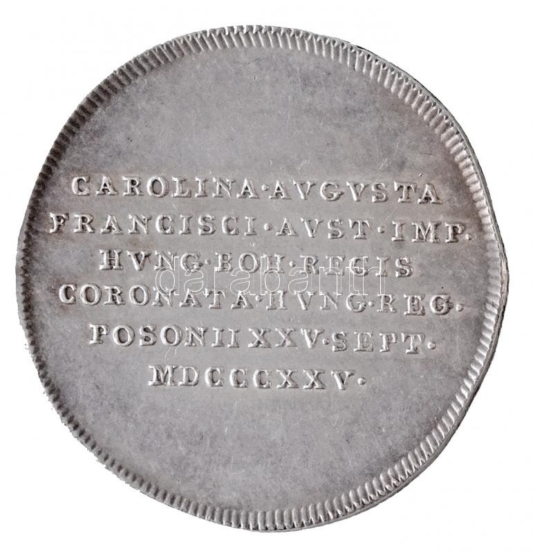 Habsburg Birodalom 1825. "Karolina Auguszta magyar királyné pozsonyi koronázása" Ag zseton. "CAROLINA AVGVSTA - FRANCISCI AVST IMP - HVNG BOH REGIS - CORONATA HVNG REG - POSONII XXV SEPT - MDCCCXXV / PIE VT CLEMENTER" (4,39g/26mm) T:2 / Habsburg Monarchy 1825. "Coronation of Caroline Augusta of Bavaria" Ag token (4,39g/26mm) C:XF