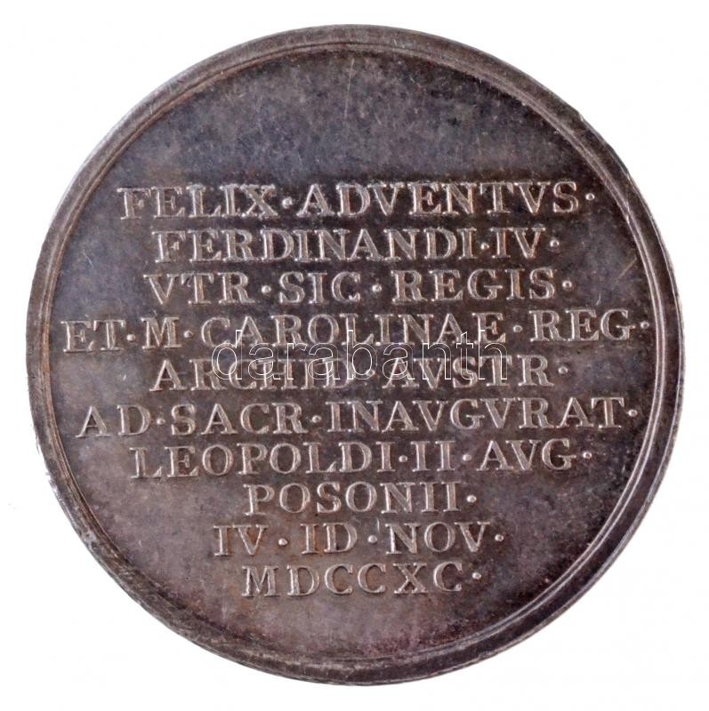 Habsburg Monarchia 1790. "II. Lipót pozsonyi koronázásán IV. Ferdinánd szicíliai király és neje" Ag zseton. "FELIX ADVENTVS - FERDINANDI IV - VTR SIC REGIS - ET M CAROLINAE REG - ARCHID AVSTR - AD SACR INAVGVRAT - LEOPOLDI II AVG - POSONII - IV ID NOV - MDCCXC / PANNONIA LAETA - EX DECRETO - STAT ET ORDIN - HVNGARIAE" (4,38g/25mm) T:2 karc / Habsburg Monarchy 1790. "Ferdinand IV, king of Sicily and his wife on the coronation of Leopold II" Ag token (4,38g/25mm) C:XF scratched