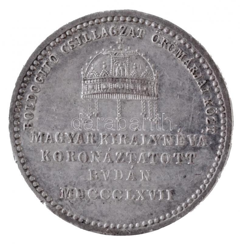 Osztrák-Magyar Monarchia / Bécs 1867A "Erzsébet koronázása Budán" Ag zseton. "ERZSÉBET AVSZTRIAI CSÁSZÁRNÉ / BOLDOGÍTÓ CSILLAGZAT ÖRÖMÁRJAI KÖZT - MAGYAR KIRÁLYNÉVÁ - KORONÁZTATOTT - BVDÁN - MDCCCLXVII" (3,31g/20mm) T:2 kis ph. / Austro-Hungarian Monarchy / Vienna 1867A "Coronation of Elizabeth in Buda" Ag jeton (3,31g/20mm) C:XF small edge error