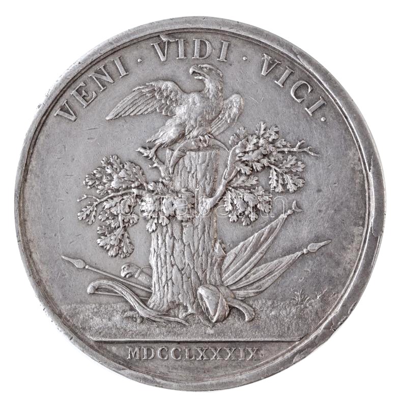 Habsburg Birodalom 1789. "Laudon generális elfoglalja Belgrádot" jelzetlen Ag emlékérem. "GEDEON LAVDONIVS EXERCITVS CAESAR DVX - I. VINAZER F/ VENI VIDI VICI". Szign.: Ignaz Vinazer (26,27g) T:2 ph. / Habsburg Monarchy 1789. "Capture of Belgrad by General Laudon" Ag commemorative medallion without mintmark. Sign.: Ignaz Vinazer (26,27g) C:XF edge error