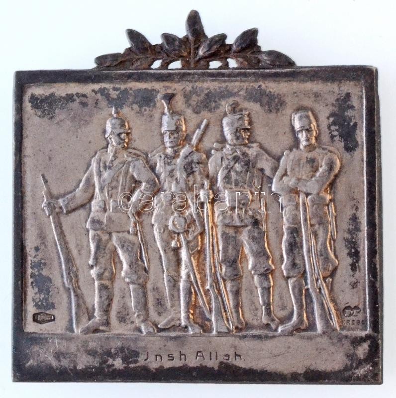 Oszmán Birodalom ~1914-1918. "INSH ALLAH" jelzett Ag sapkajelvény, FM gyártási jelzéssel (37x38mm/0.800/8,16g) T:1- patina / Ottoman Empire ~1914-1918. "INSH ALLAH" marked Ag cap badge, with FM maker's mark (35x36mm/0.800/8,16g) C:AU patina