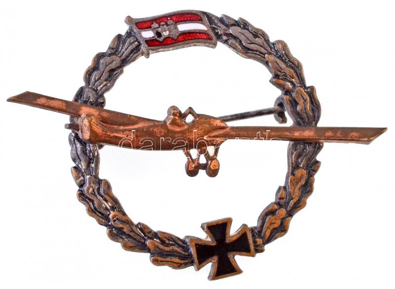Beschreibung: Osztrák-Magyar Monarchia ~1915. Zománcozott, festett Br koszorús pilóta jelvény vízszintes tűvel (33x46mm) T:2 apró zománchiba / Austro-Hungarian Monarchy ~1915. Enamelled, painted Br wreathed pilot badge with vertical pin (33x46mm) C:XF tiny enamel error