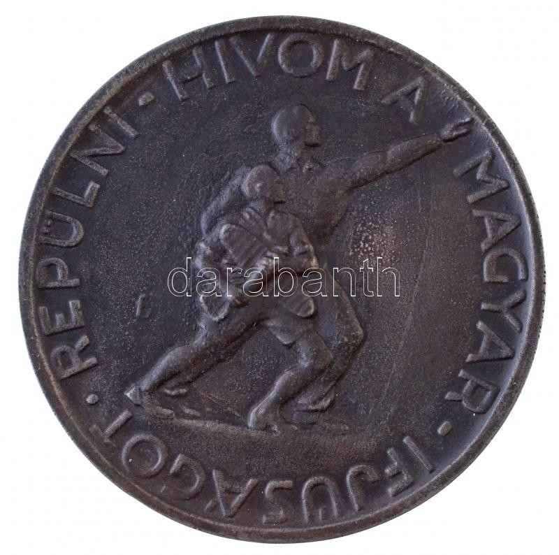 Pankotai Farkas Béla (1885-1945) ~1940. "Repülni Hívom a Magyar Ifjúságot" egyoldalas, öntött fém plakett (203,42g/99mm) T:2 / Hungary ~1940. "Repülni Hívom a Magyar Ifjúságot" one-sided cast metal plaque. Sign.: Béla Pankotai Farkas (203,42g/99mm) C:XF