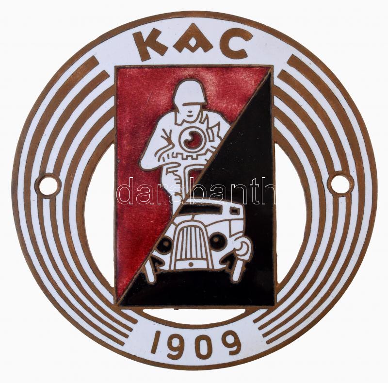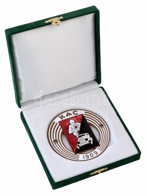 ~1930-1940. "KAC (Kispesti Athletikai Club) 1909" zománcozott autó-motorsport jármű jelvény, hátlapon "BERÁN N" gyártói jelzéssel (84mm) T:1 / Hungary ~1930-1940. "KAC (Kispesti Athletikai Club) 1909" enamelled Automobile and Motor Sport badge for veichles, with "BERÁN N" maker's mark on reverse (84mm) C:UNC