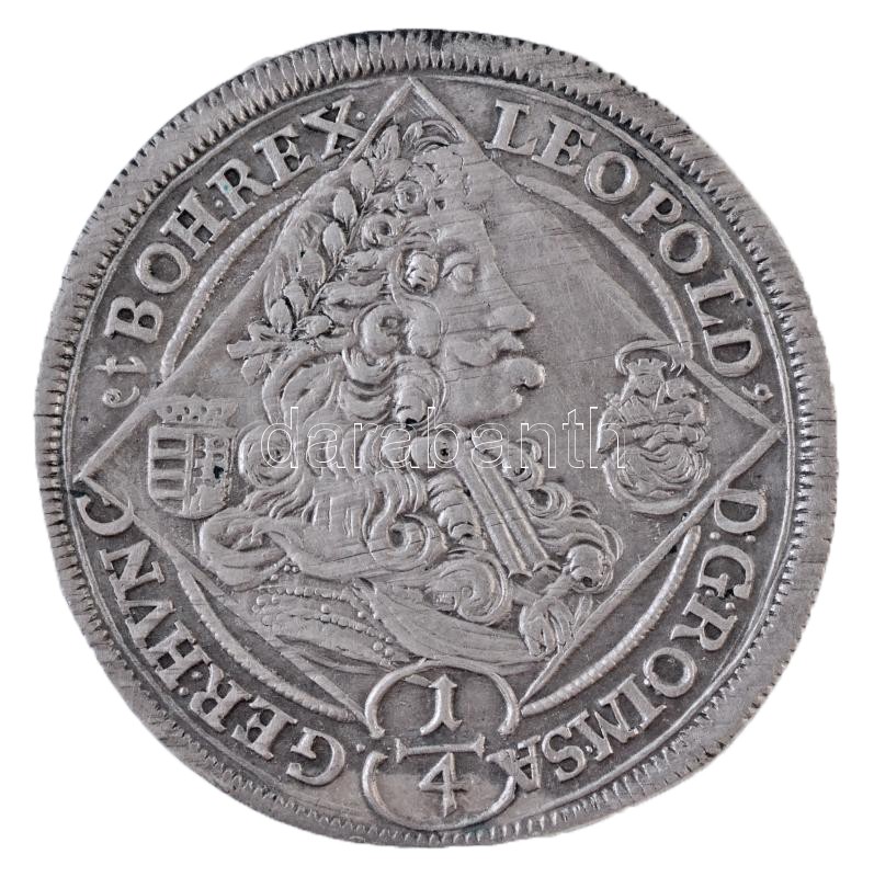 1698K-B 1/4 Tallér Ag "I. Lipót" Körmöcbánya (7,19g) T:1-,2 ... https://www.darabanth.com/de/33-Gross-Auktion/33.1/Numismatik/Ungarische-Munzen-und-Munzen-mit-ungarischem-Munzzeichen~13838/1698K-B-14-Taller-Ag-I-Lipot-Kormocbanya-7-19g-T1-2-juszt-Hungary-1698K-B-14-Thaler~II2126399