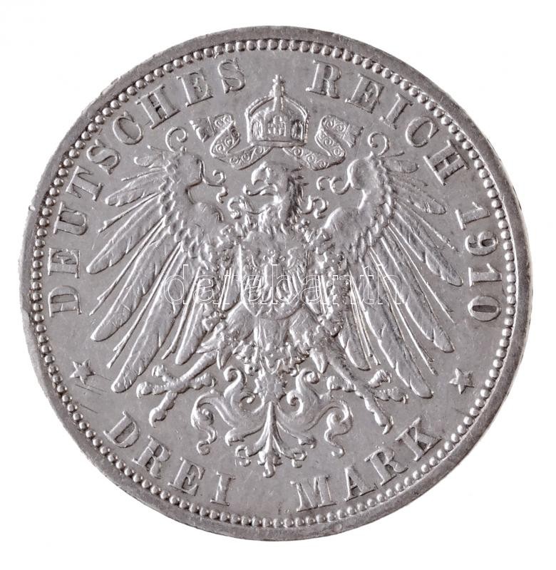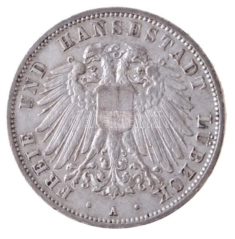 Német Államok / Lübeck 1910A 3M Ag Berlin (16,68g) T:2 ph. / German States / Lubeck 1910A 3 Mark Ag Berlin (16,68g) C:XF edge error Krause KM# 215