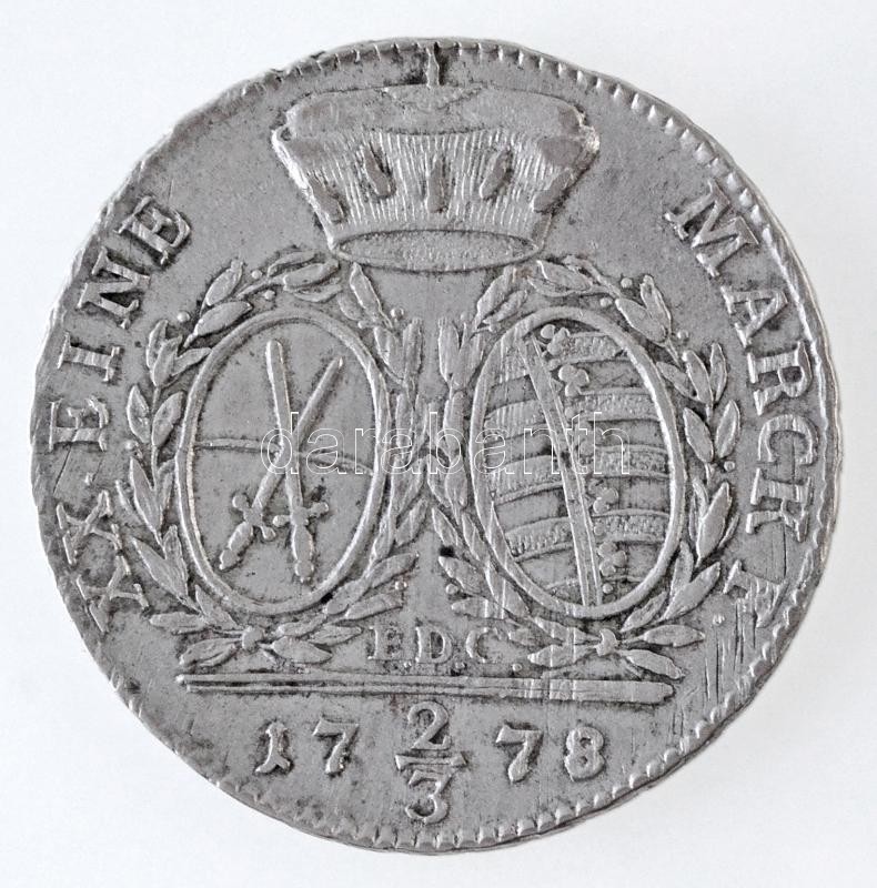 Német Államok / Szászország-Albertine 1778EDC 2/3T Ag "III. Frigyes Ágost" Drezda (14,06g) T:2,2- juszt. / German States / Saxony-Albertine 1778EDC 2/3 Thaler Ag "Friedrich August III" Dresden (14,06g) C:XF,VF justierd Krause KM# 991