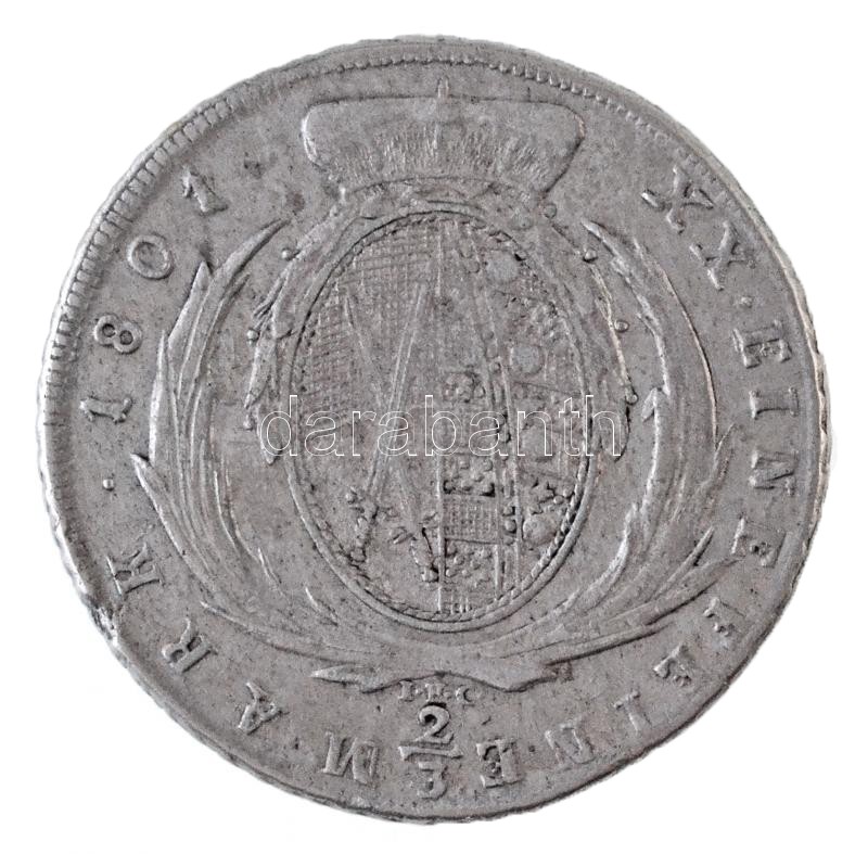Német Államok / Szászország-Albertine 1801IEC 2/3T Ag "III. Frigyes Ágost" Drezda (13,91g) T:2- kis ph. / German States / Saxony-Albertine 1801IEC 2/3 Thaler Ag "Friedrich August III" Dresden (13,91g) C:VF small edge error Krause KM# 1025