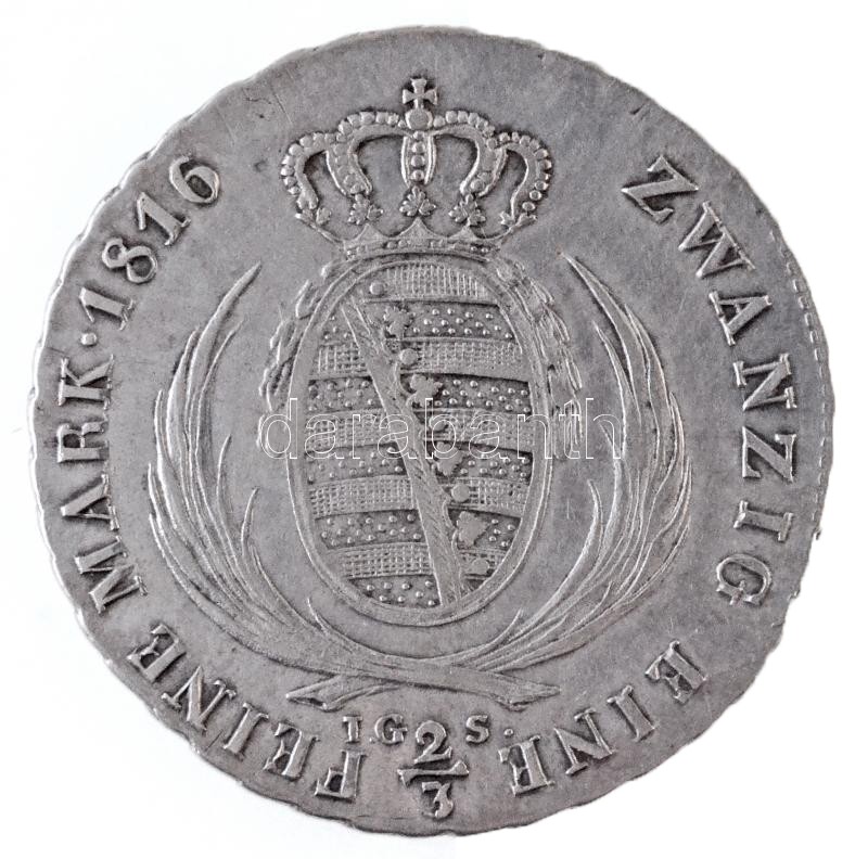 Német Államok / Szászország-Albertine 1816IGS 2/3T Ag "III. Frigyes Ágost" Drezda (13,96g) T:2 / German States / Saxony-Albertine 1816IGS 2/3 Thaler Ag "Friedrich August III" Dresden (13,96g) C:XF Krause KM# 1052