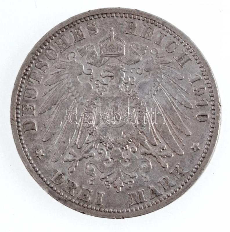 Német Államok / Szászország-Weimar-Eisenach 1910A 3M Ag "A főherceg második házassága" (16,62g) T:2,2- ph. / German States / Saxe-Weimar-Eisenach 1910A 3 Mark Ag "Grand Duke's Second Marriage" (16,62g) C:XF,VF edge error Krause Y#176