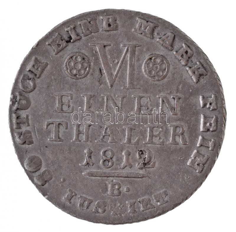 Német Államok / Vesztfália 1812B 1/6T Ag "Hieronymus Napoleon" Brunswick (5,35g) T:2,2- / German States / Westphalia 1812B 1/6 Thaler Ag "Hieronymus Napoleon" Brunuswick (5,35g) C:XF,VF
