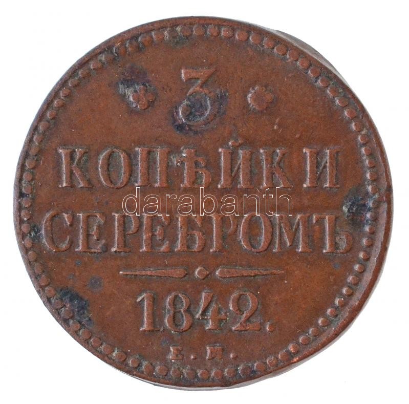 Orosz Birodalom 1842EM 3k Cu Jekatyerinburg (27,49g) T:2,2- kis ph., fo. / Russian Empire 1842EM 3 Kopeks Cu Ekaterinburg (27,49g) C:XF,VF small edge error, stained