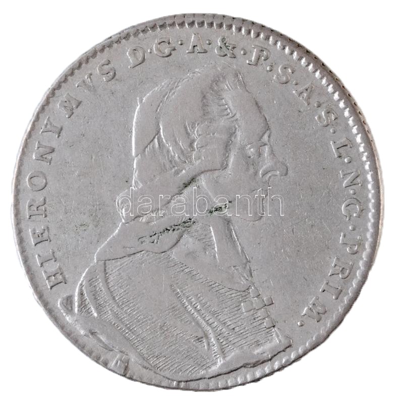 Osztrák Államok / Salzburg 1790M 20kr Ag "Hieronymus" (6,53g) T:2,2- Austrian States / Salzburg 1790M 20 Kreuzer Ag "Hieronymus" (6,53g) C:XF,VF Krause KM# 460