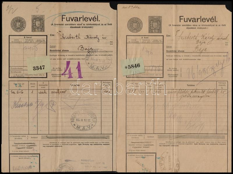 Beschreibung: 1939-1945 Vegyes okmány tétel (születési anyakönyvi kivonat, Triesti Általános Biztosító Társulat, fuvarlevél), 4 db