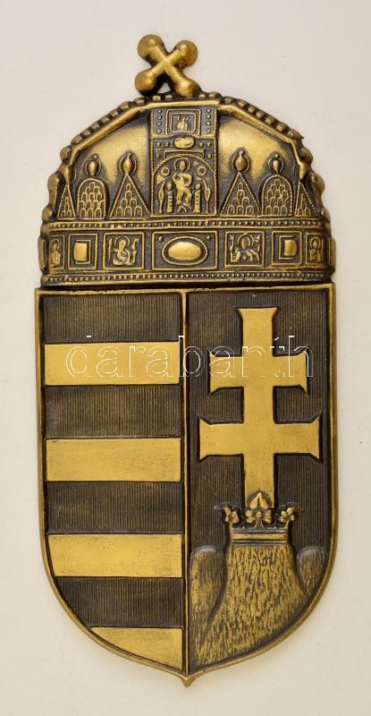 Koronás magyar kiscímer, rézszínű alumíniumöntvény, 31,5×14,5 cm https://www.darabanth.com/de/330-Fernauktion/330.0/Andere-Sammelgebiete/Flohmarkt~500011/Koronas-magyar-kiscimer-rezszinu-aluminiumontveny-31-5C39714-5-cm~II1842629