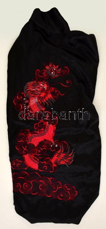 Beschreibung: Tigrishímzéssel díszített, két oldalon hordható selyem köntös