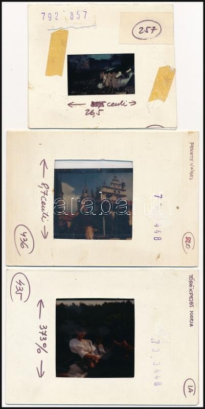Beschreibung: 3 db diapozitív: A kőszívű ember fiai, Fekete város, törökfejes kopja, feliratozva, különböző méretben