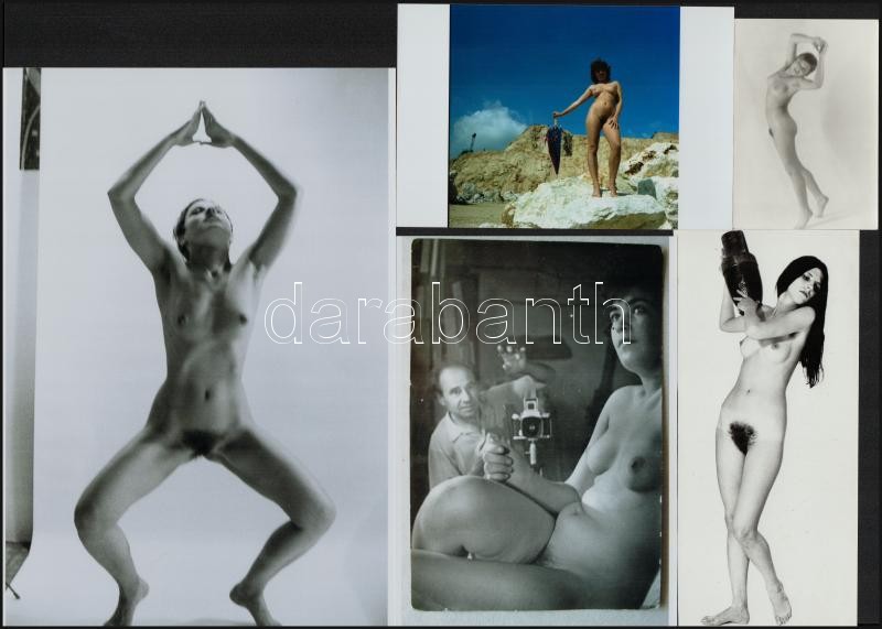 Csábos teremtések pucér kavalkádja, cca 1960 és 1980 között készült, szolidan erotikus felvételek vegyes válogatása, 6 db vintage negatÃv (6x6 cm) + 6 db vintage fotó, és/vagy mai nagyÃtás, a papÃrképek és a negatÃvok között nincs összefüggés, 9,5x6,5 cm és 25x18 cm között