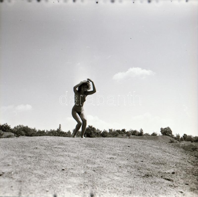Beschreibung: ElÅ‘tte is, utána is, cca 1969 és 1976 között készült, szolidan erotikus felvételek vegyes válogatása, 6 db vintage negatÃv (6x6 cm) + 7 db vintage fotó, és/vagy mai nagyÃtás, a papÃrképek és a negatÃvok között nincs összefüggés, 9x6 cm és 25x18 cm között