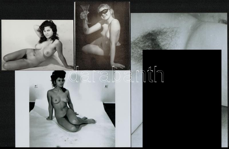 Házibulis felvételek, cca 1969 és 1978 között készült, szolidan erotikus felvételek vegyes válogatása, 5 db vintage negatív (6x6 cm) + 7 db vintage fotó, és/vagy mai nagyítás, a papírképek és a negatívok között nincs összefüggés, 9x6 cm és 25x18 cm között