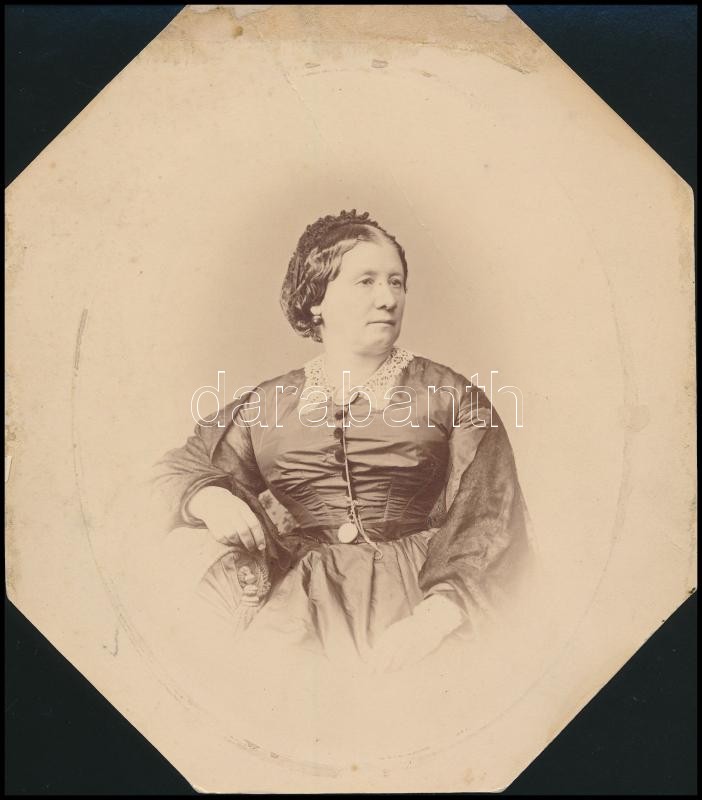 Beschreibung: cca 1862 Elischer Boldizsárné (született Flandorfer Wilhelmina) feliratozott portréja, (a képen törésvonal), 21,5x19 cm