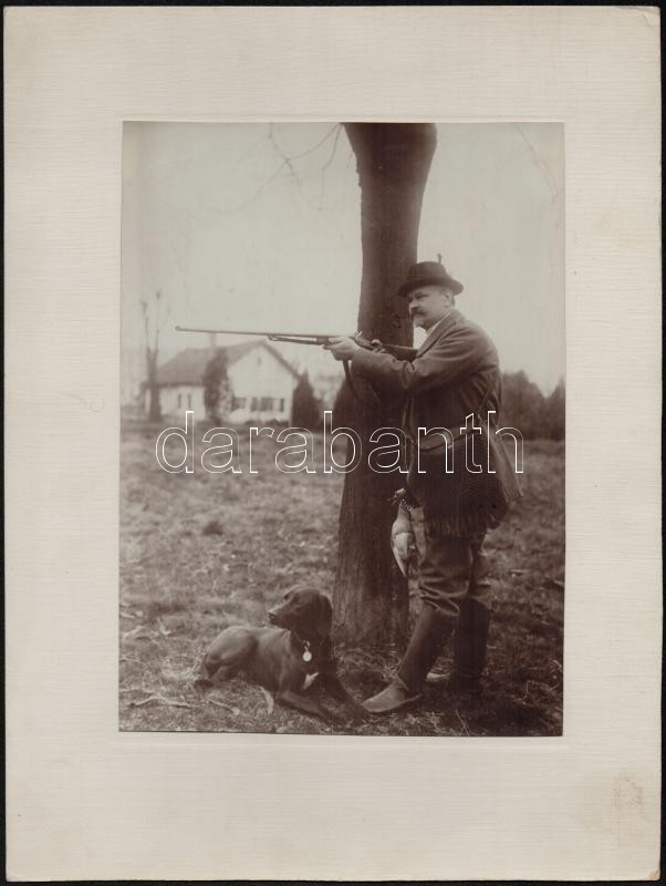 cca 1900-1920 Vadász kutyájával, kartonra kasírozott fotó, 23×17 cm https://www.darabanth.com/de/330-Fernauktion/330.0/Andere-Sammelgebiete/Foto~500019/cca-1900-1920-Vadasz-kutyajaval-kartonra-kasirozott-foto-23C39717-cm~II1841122