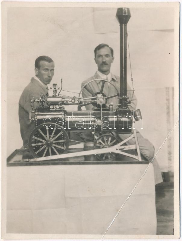 cca 1920 Gőzgép makettje, fotó, felületén törésnyommal, 11×8 cm https://www.darabanth.com/de/330-Fernauktion/330.0/Andere-Sammelgebiete/Foto~500019/cca-1920-Gozgep-makettje-foto-feluleten-toresnyommal-11C3978-cm~II1841346