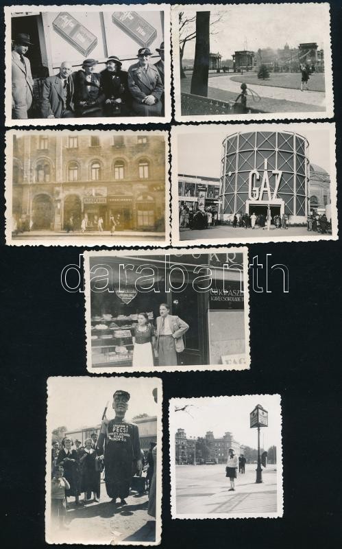 Beschreibung: cca 1930-1940 Budapesti életképek, 7 db fotó, egy részük hátulján feliratozva, különböző méretben