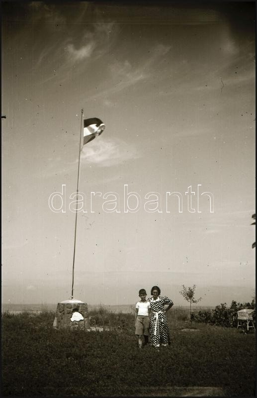 Beschreibung: cca 1930-1940 Országzászló / trianoni emlékmű (?) ismeretlen helyen, 2 db fotónegatív, 9×6 cm