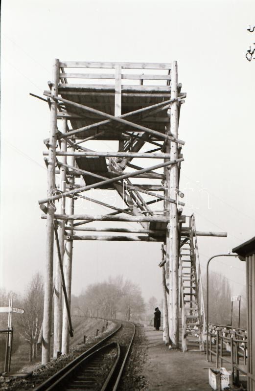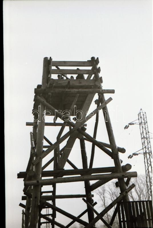 Beschreibung: cca 1944 Budapest, katonai őrtorony a vasúti híd előtt, erről vizsgálták át felülről az áthaladó vonatokat, 3 db vintage negatív, 24x36 mm